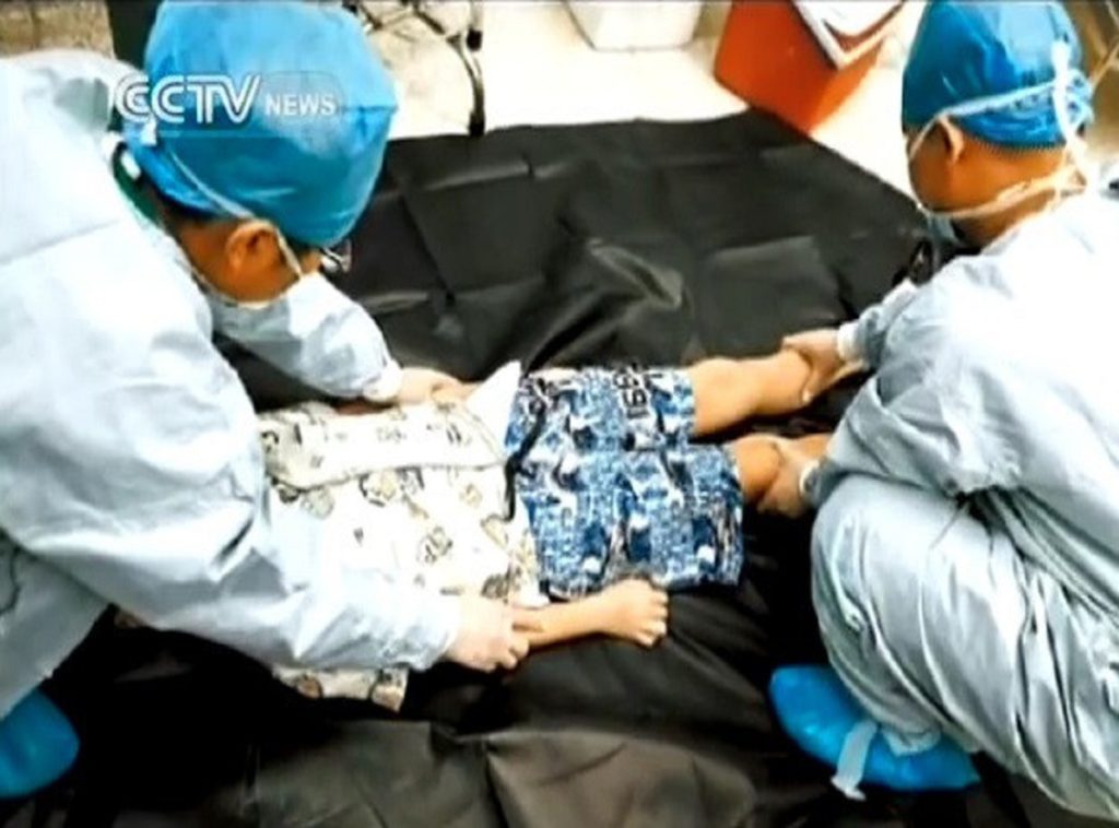 無事に臓器摘出を終えると、医師たちはリャンくんに衣服を着させます。
