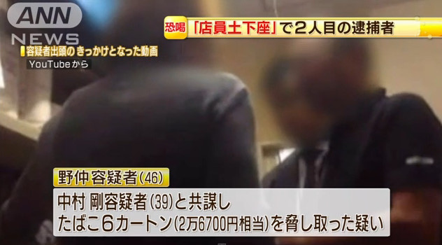 他は不動産会社社員、野仲史晃(ふみあき)容疑者(46)。逮捕容疑は8日午前11時半ごろ、大阪府茨木市横江2の「ファミリーマート茨木横江店」の事務所で男性店長(25)や父親のオーナー(51)に「誠意見せんかい」「謝るの普通は手ぶらちゃうわな」などと怒鳴り、たばこ6カートン(2万6700円相当)を脅し取ったとしている。