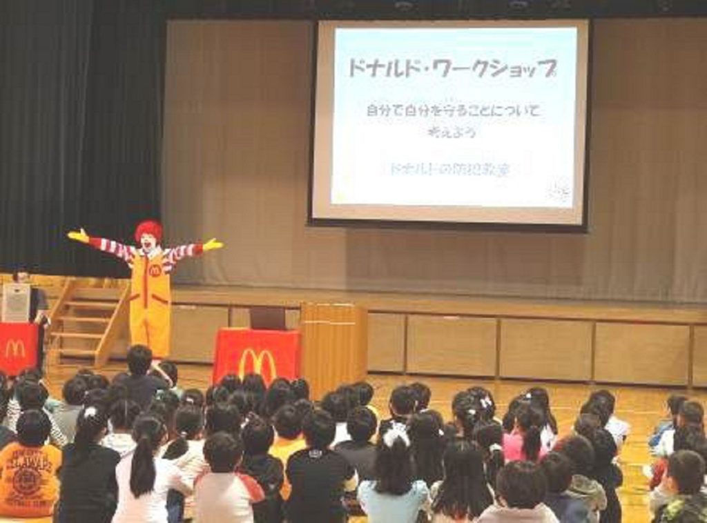 自分で自分の身を守るためにどうすればいいのかを授業形式で学べる、ドナルド防犯教室という活動も行われています。
