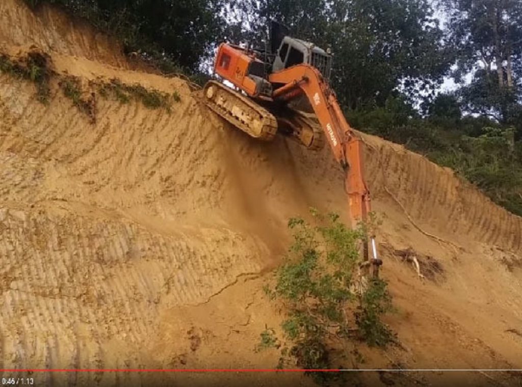 動画はマレーシアのサバ州で撮影されたという、油圧ショベル(ショベルカー)を使ったカースタント映像。