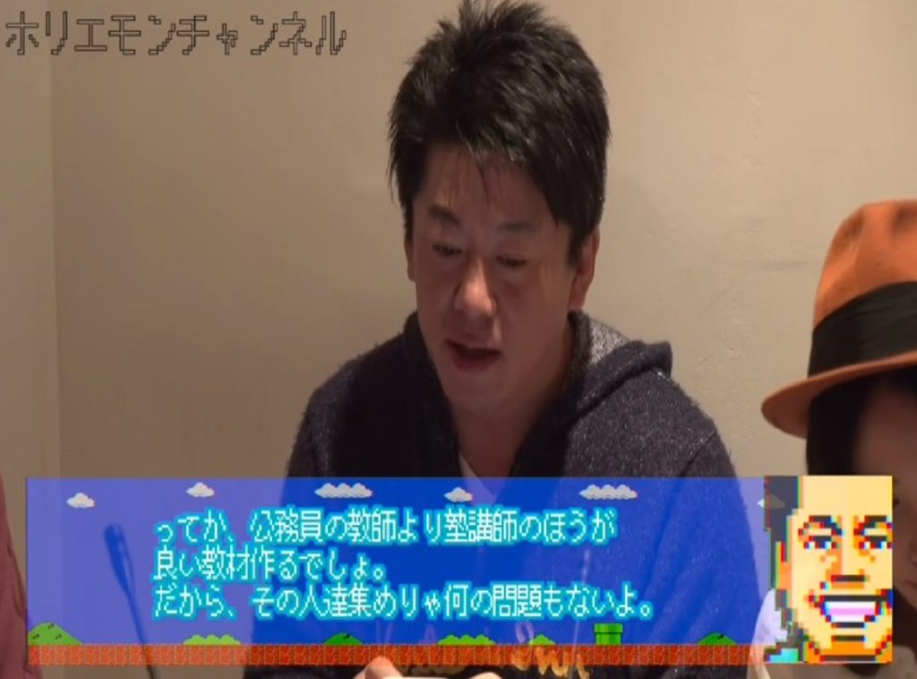 ホリエモンは、「というか、公務員の教師より塾講師の方が良い教材を作るでしょ。だから、その人たちを集めれば問題ないよ。教材ではないけど、彼らの授業をそうやって事業化しているのがリクルートの『受験サプリ』だけどね」と回答。