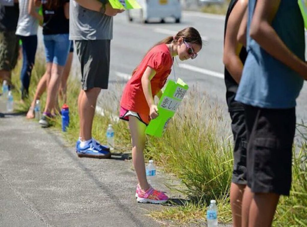 この悲しい事件を受け、沖縄に住むアメリカ人が道路脇で頭を下げているとネットで話題になりました。