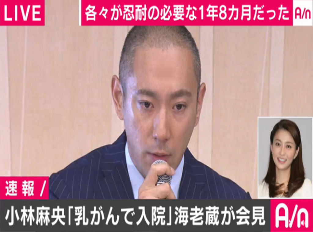 歌舞伎俳優・市川海老蔵(38)が都内で開いた緊急会見を生中継。海老蔵は妻の小林麻央(33)が乳がんを患っていることを明かした。